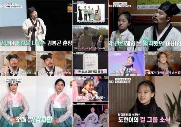 딸들에 대한 애정뿐 아니라 어느덧 30년차 방송인이 된 김봉곤 훈장의 전성기 시절도 공개됐다. 김봉곤 훈장은 "90년대 중반까지 제 전성기였다. 댕기머리를 풀고 가수 데뷔와 영화까지 찍으며 왕성하게 활동했다"며 화려했던 지난날을 떠올렸다. 또한 올해 고등학교를 졸업한 사실도 공개하며 "청학동은 취미활동을 공부할 수 있는 토대가 없다. 학교가 너무 멀고 차도 없다. 학교를 포기하고 전통 서당 공부만 하게 되는 거다. 사회생활을 하다보니 내 부족함이 느껴져서 검정고시란 제도가 있어서 공부를 해서 시험을 쳤고, 고등학교 과정 졸업을 올해 마쳤다"고 만 50세에 고등학교 과정을 마쳤다고 고백해 가슴 뭉클함을 전했다.