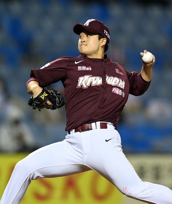 4회초 교체 등판한 키움 김재웅이 역투하고 있다.