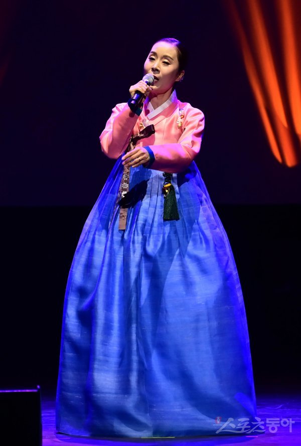 국악인 박애리가 20일 서울 용산구 국립중앙박물관 극장 용에서 열린 2021 터키-서울 소통의 날 온택트 라이브 쇼 ‘함께 이겨냅시다!(비릴리크테 바샤라자으즈)’에서 ‘쑥대머리’로 전통 국악 공연을 펼치고 있다.