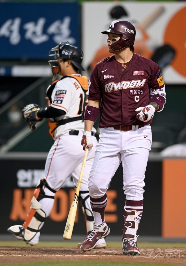 3회초 2사 3루 키움 박병호가 삼진 아웃을 당하고 있다.
