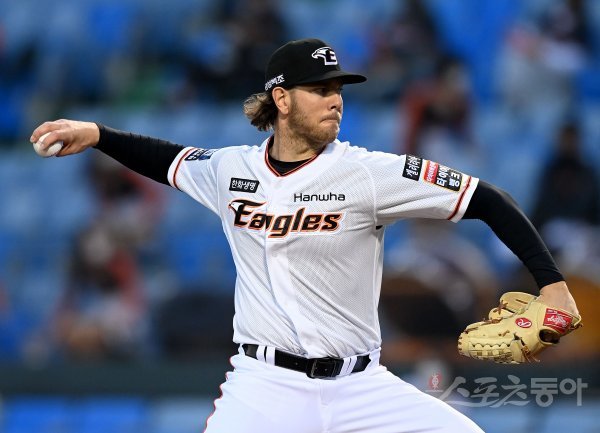 선발 투수로 등판한 한화 킹험이 역투하고 있다.