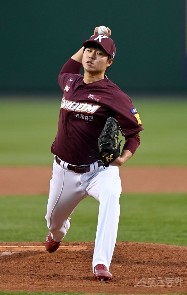 선발 투수로 등판한 키움 김정인이 역투하고 있다.