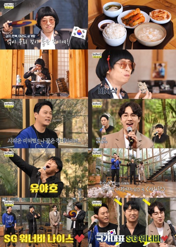 유야호와 SG워너비의 콜라보는 ‘아리랑’ 무대에서 더욱 빛을 발했다. 국악과 어우러진 SG워너비의 ‘아리랑’에 흥겹게 춤을 추는 유야호, \'김치, 한복, 태권도, 삼계탕 역시 우리 것이 좋은 것이여!’라는 자막까지 더해져 시청자들의 가슴을 벅차오르게 만들었다.