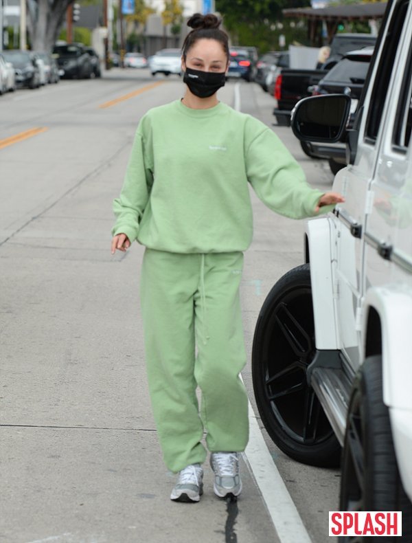 23일(현지시간) 미국 로스앤젤레스(LA)에 한 주차장에서 포착된 카라 산타나는 그린 계열의 트레이닝복을 입고 편안하면서 자연스러운 멋을 선보였다.