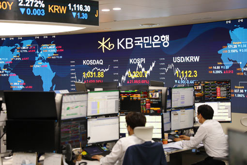 5월 3일 공매도가 코스피200과 코스닥150 구성 종목으로 제한해 재개되는 가운데 향후 주식시장에 미칠 영향에 동학개미들의 관심이 증폭되고 있다. 사진은 코스피 종가 기준 사상 최고치인 3220.70으로 마감한 20일 서울 여의도 KB국민은행 딜링룸 모습. 사진제공|KB국민은행