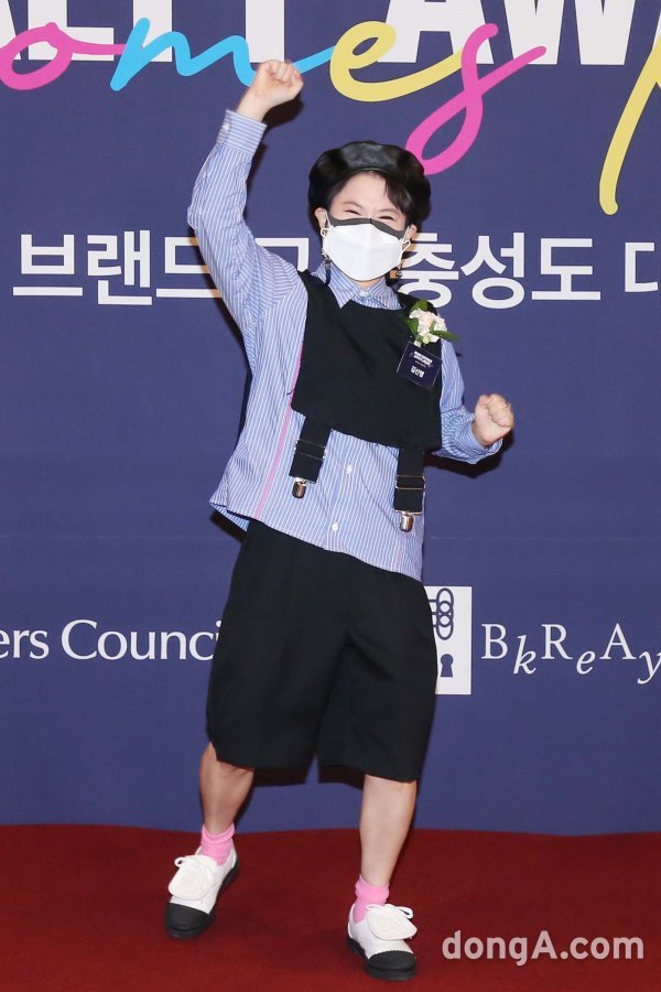 개그맨 김신영이 27일 오후 \'2021 브랜드 고객충성도 대상\' 시상식에 참석해 포토타임을 갖고 있다.