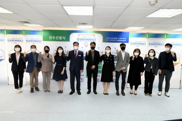 선수선발식에는 전기 우승팀인 보령시(보령 머드·감독 문도원)를 비롯해 팀명을 변경한 부안군(부안 새만금잼버리·감독 김효정)과 여수시(섬섬여수·감독 이현욱) 그리고 포스코케미칼(포항 포스코케미칼·감독 이정원), 서귀포시(서귀포 칠십리·감독 김혜림), 부광약품(서울 부광약품·감독 권효진), 삼척시(삼척 해상케이블카·감독 이다혜) 및 신생팀 순천시(순천만국가정원·감독 양건) 등 8개 팀 감독과 관계자가 참석했다.