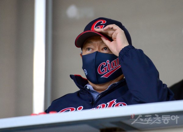롯데 자이언츠 구단주 신동빈 롯데그룹 회장이 야구장을 방문해 경기를 관전하고 있다.
