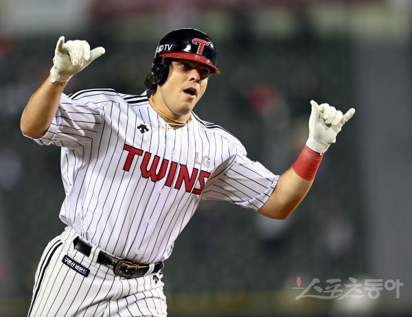3회말 2사 LG 라모스가 중월 솔로 홈런을 날리고 그라운드를 돌며 기뻐하고 있다.
