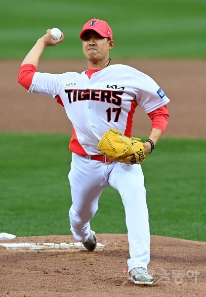 27일 광주KIA챔피언스필드에서 ‘2021 신한은행 SOL KBO리그‘ KIA 타이거즈와 한화 이글스의 경기가 열렸다. KIA 선발투수 임기영이 힘차게 볼을 던지고 있다. 광주 | 김민성 기자 marineboy@donga.com
