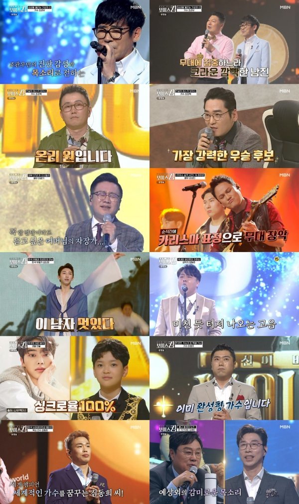 MBN \'보이스킹\'이 또 한 번 역대급 무대로 화요일 밤을 제대로 접수했다.27일 MBN 초대형 보컬 서바이벌 ‘보이스킹’(기획/연출 박태호) 3회에서는 대한민국 최고의 레전드 보컬과 막강한 실력을 갖춘 무명가수들이 더욱 치열해진 경연을 펼쳤다. 반전에 반전이 속출하는 경연 현장은 가요계를 주름잡았던 가왕들까지도 긴장하게 만들었다.