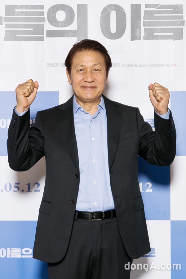 배우 안성기가 28일 오후 서울 광진구 한 멀티플렉스관에서 열린 영화 \'아들의 이름으로\' 시사회 및 기자간담회에 참석해 포즈를 취하고 있다.