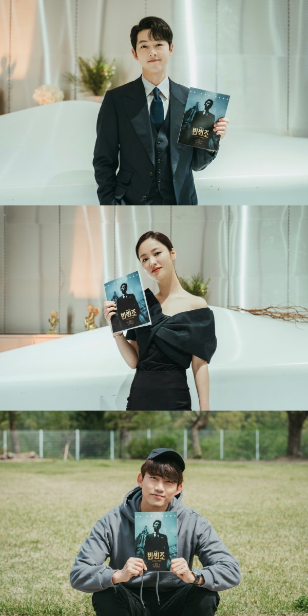 한 치 앞을 예측할 수 없는 반전과 통쾌한 전개, 극의 무게감과 웃음을 절묘하게 직조한 연출, 배우들의 열연이 시너지를 발휘하며 매회 ‘빈센조’ 열풍을 불러일으켰다. 다크 히어로와 빌런으로 변신한 송중기, 전여빈, 옥택연은 역대급 하드캐리를 선보이며 시청자들의 사랑을 독차지했다. 이에 최종회를 앞두고 애정과 감사의 마음이 듬뿍 담긴 마지막 ‘본방사수’ 메시지를 보냈다.