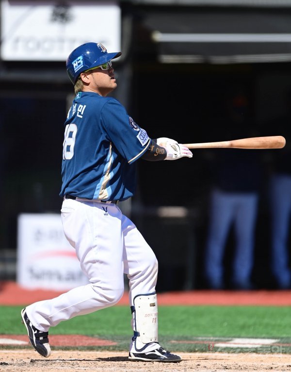 9일 수원KT위즈파크에서 ‘2021 신한은행 SOL KBO리그’ KT 위즈와 NC 다이노스의 더블헤더 1차전 경기가 열렸다. 4회초 1사 1, 2루 NC 박석민이 우전 3점 홈런을 치고 있다.
