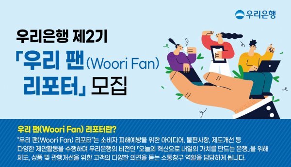 우리은행이 16일까지 고객패널 ‘우리 팬 리포터’ 2기를 모집한다.