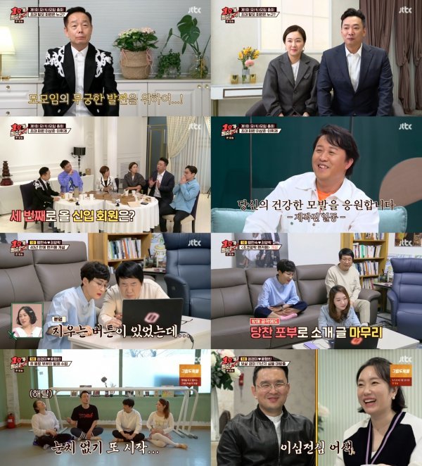 이날 방송에서 임미숙-김학래, 김지혜-박준형 부부는 ‘제1회 모(毛) 모임 총회’를 개최하며 분주하게 하루를 시작했다. 김학래는 탈모인들의 자부심을 심어주기 위해 사비를 들여 행사를 개최했다고 밝혔다. 부회장으로 총회에 참석한 박준형은 김학래를 회장님으로 모시겠다며 영원한 모(毛) 모임의 부회장을 자처해 웃음을 자아냈다.