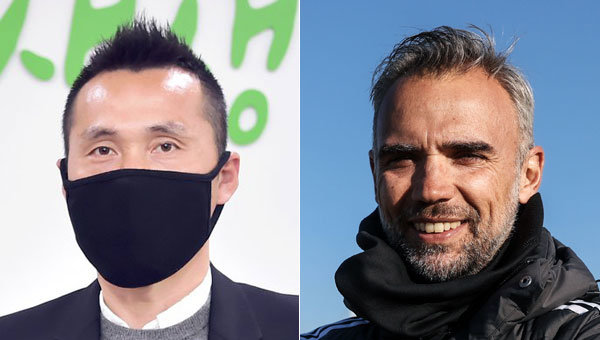 안산 김길식 감독(왼쪽), 부산 페레즈 감독. 사진제공 | 안산 그리너스 SNS, 한국프로축구연맹