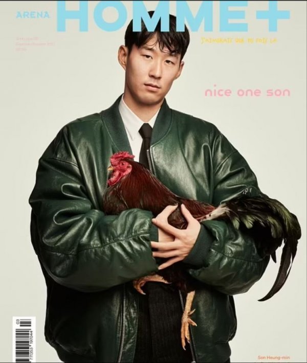 아레나 옴므 플러스의 표지 사진에서 손흥민은 토트넘 구단을 상징하는 수탉을 품에 안은 채 포즈를 취했다. 무덤덤한 표정을 한 손흥민 옆에는 ‘나이스 원 손(nice one son)’이라는 문구가 새겨졌다. ‘나이스 원’은 조세 무리뉴 전 토트넘 감독의 별명인 ‘스폐셜 원’에서 따온 것으로, 항상 밝고 긍정적인 손흥민의 이미지를 부각한 별명이다.