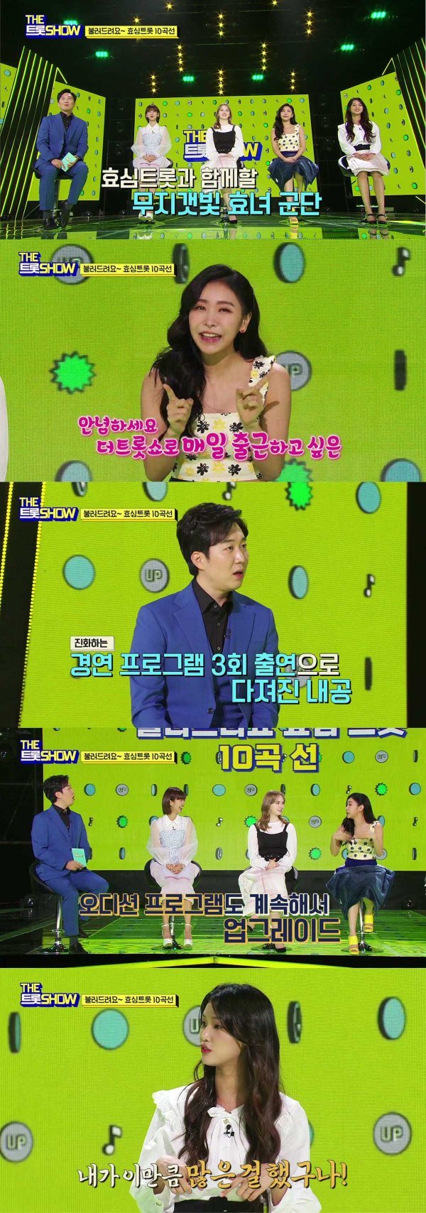 12일 방송하는 <더 트롯쇼> 에는 가정의 달을 맞이하며 '효심트롯 10곡'을 차트로 만나본다. 강혜연, 마리아, 허찬미, 황우림이 효녀군단으로 출연하며 MC도경완과 함께 이야기를 나눈다.