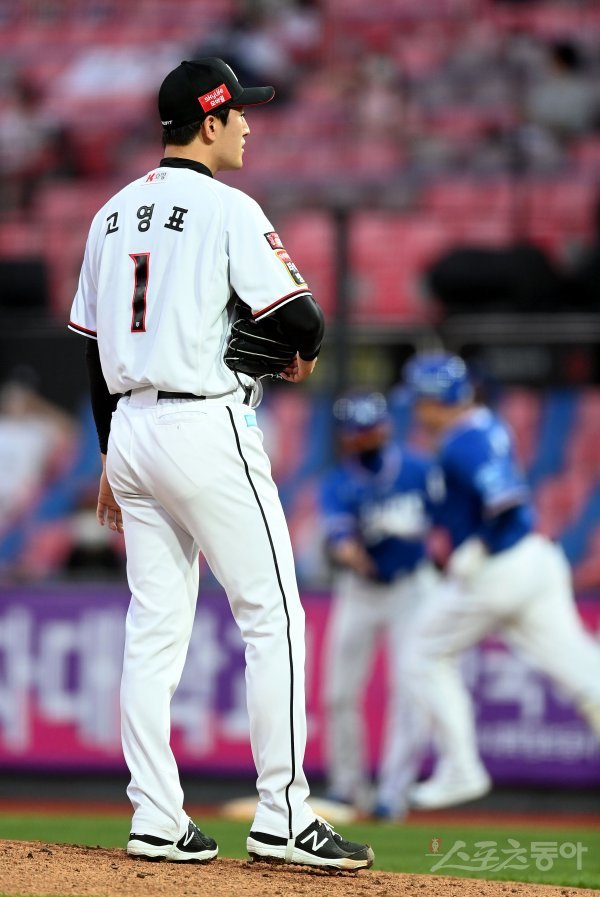 KT 선발 고영표가 3회초 2사 삼성 오재일에게 우월 솔로 홈런을 허용하고 있다.