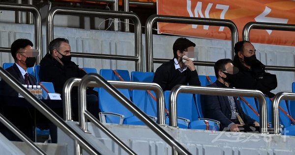 12일 강원도 춘천 송암스포츠타운에서 열린 ‘하나원큐 K리그1 2021’ 강원FC와 울산 현대의 경기에서 축구대표팀 벤투 감독과 올림픽축구대표팀 김학범 감독이 경기를 지켜보고 있다.