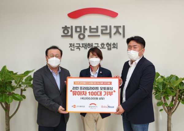 희망브리지 전국재해구호협회(회장 송필호)는 유아용품 전문기업 ㈜에이원(대표이사 이의환)이 유아차 100대를 기부했다고 13일 밝혔다.