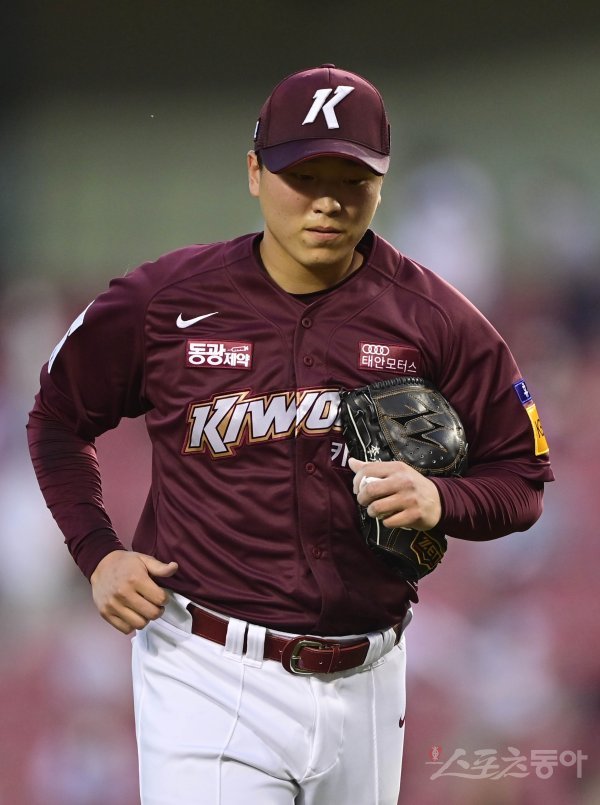2회초 수비를 마친 뒤 키움 이승호가 더그아웃으로 향하고 있다.