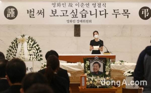 故 이춘연 대표 영결식이 15일 오전 서울 성모명원 장례식장에서 거행됐다. 배우 권해효의 사회로 진행된 영결식은 영화계 감독과 배우들의 추도사와 추모 영상이 상영됐다.