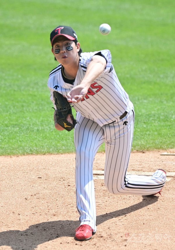 19일 서울 잠실야구장에서 ‘2021 신한은행 SOL KBO리그’ LG 트윈스와 NC 다이노스의 경기가 열렸다. 선발 투수로 마운드에 오른 LG 이상영이 역투하고 있다.