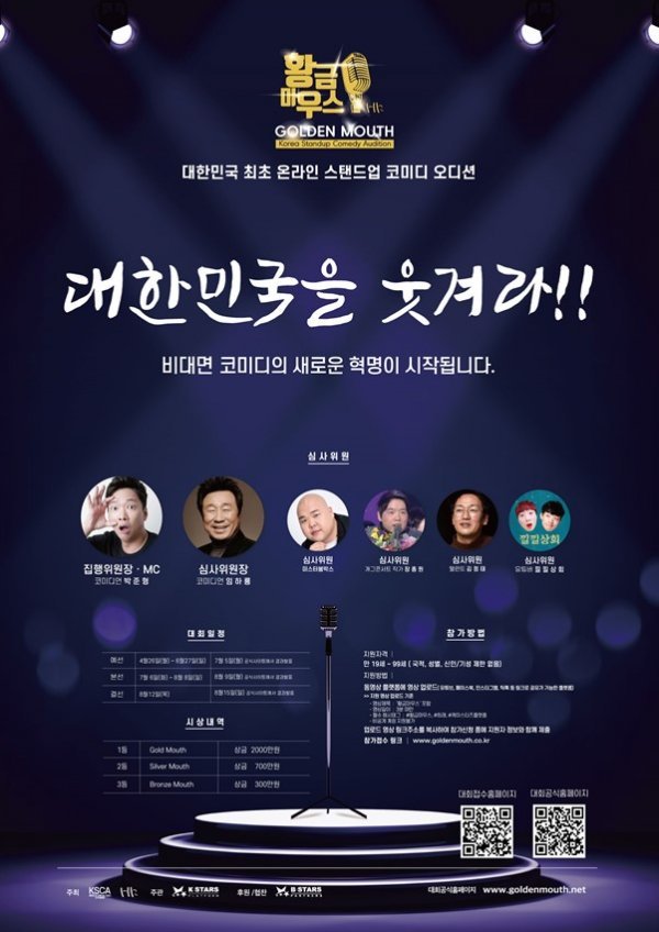 케이스타즈플랫폼은 8월12일 유튜브 등 SNS를 통한 ‘2021 한국 스탠드업 코미디 대국민 오디션:황금마우스(Golden Mouth·황금마우스)’를 개최한다.