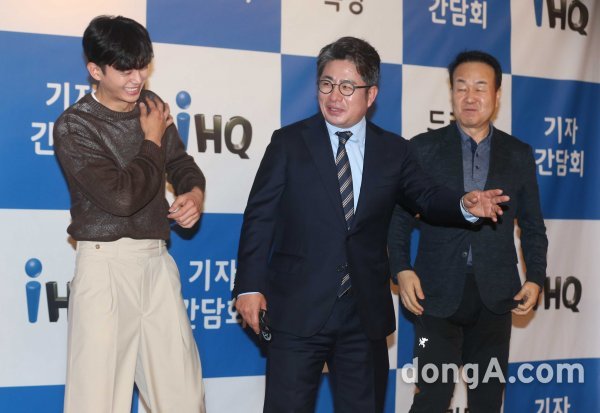 배우 이지훈, 박종진 IHQ 총괄사장, 곽기원 감독이 20일 오후 서울 중구 롯데호텔에서 열린 박종진 총괄사장 기자간담회 & IHQ 채널 개국 및 드라마 \'욕망\' 기자간담회에서 참석하고 있다.