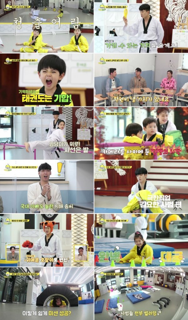 익숙하게 스트레칭을 시작한 아이들은 관장 나태주가 가져온 노란 띠를 영접한 뒤 그 어느 때보다 강렬한 열정을 드러냈다. ‘수퍼 병아리’를 위한 첫걸음으로 품새 태극 1장 연습이 시작됐고, 아직 왼손과 오른손의 개념이 헷갈리는 나이인 다섯 살 태혁-지해-채윤-로운은 나태주-태미의 세심한 설명과 ‘젤리’의 힘으로 오랜 시간 집중하는 ‘기적’을 보였다. 수업 장면을 지켜보던 현영은 “애들 눈높이에 정확히 맞춘 설명”이라고 감탄했고, 알베르토는 “학원비를 낼 가치가 있다”며 만족감을 드러냈다.