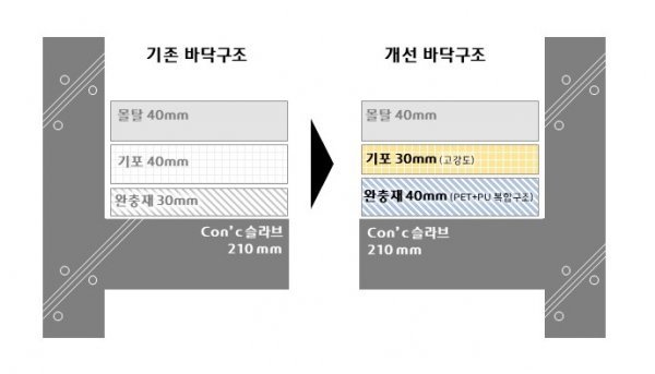 현대건설이 고성능 바닥구조시스템인 ‘H 사일런트 홈 시스템Ⅰ’의 개발을 완료하고 국내 최초로 바닥충격음 차단구조 현장 인정서 획득을 마쳤다. 소음 저감과 충격 흡수 극대화를 위해 특수 첨단 소재를 사용한 ‘H 사일런트 홈 시스템Ⅰ’은 바닥시스템의 고유 진동수를 조정해 저주파 충격진동 전달을 차단한다. 이를 통해 층간소음, 특히 중량충격음을 효과적으로 저감시킨다. 중량충격음은 주로 사람이 걷거나 뛸 때 저주파 진동에 의해 전달되는 소리로 충격력이 크고 지속시간이 길다. 현대건설이 층간차음 전문 협력사와 함께 공동개발했으며 최근 특허 등록까지 완료했다.