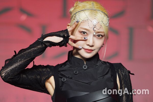 그룹 에버글로우의 온다가 25일 오후 세 번재 싱글 앨범 \'라스트 멜로디\' 발매 온라인 쇼케이스에 참석해 포즈를 취하고 있다.