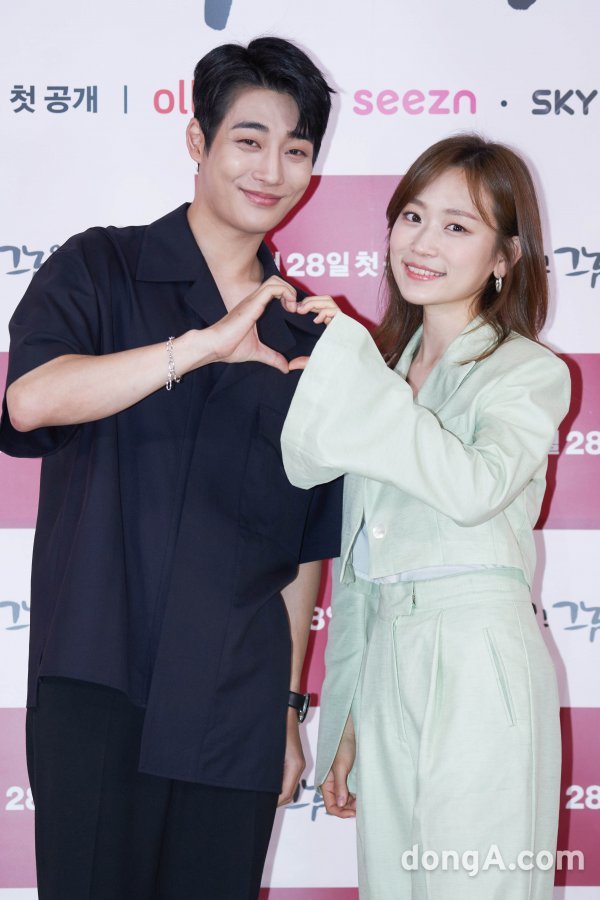 배우 강율(왼쪽)과 김슬기가 28일 오후 웹드라마 \'쉿! 그놈을 부탁해\' 온라인 기자간담회에 참석해 포즈를 취하고 있다.