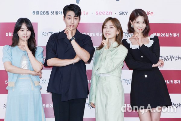28일 오후 웹드라마 \'쉿! 그놈을 부탁해\' 온라인 기자간담회에서 출연진이 참석해 포즈를 취하고 있다.