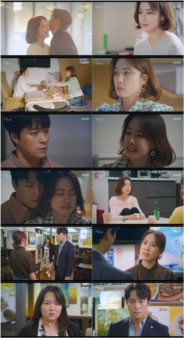 이후 배변호는 우연히 이광남과 황천길(서도진)이 러브샷을 하는 모습을 목격하고는 얼음처럼 굳었던 상태. 집에 돌아와 행복해하는 이광남을 떠올린 배변호는 착잡한 마음에 이광남이 일하는 생맥주집을 찾아갔다. 배변호는 이광남에게 생활비를 줄 테니까 그만두라고 종용했고, “아무나 만나지마. 누군지 모르지만 만난 지 얼마나 됐다고 아무데서나 러브샷하면서 깔깔대냐”라며 질투어린 충고를 건넸다. 그러자 울컥한 이광남은 술이나 마시고 가라며 돌아섰고 배변호가 그런 이광남을 붙잡던 순간, 이광남은 그대로 배변호의 따귀를 때려버렸다. “어디 손을 대? 성희롱으로 신고해줘? 내가 누굴 만나던 뭔 짓을 하던 뭔 상관인데”라며 이광남은 격노했고, 그때 들어선 신마리아가 두 사람을 목격했다. “마침 오셨네 네 마누라”라며 울분 터진 이광남, 놀란 배변호, 날 서린 신마리아가 ‘삼자 대치 엔딩’을 이루면서 다음 회에 대한 궁금증을 불러일으켰다.
