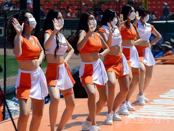 한화 치어리더가 화려한 공연을 펼치고 있다.