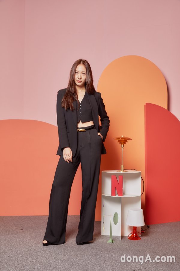 배우 정수정이 1일 오전 온라인으로 진행된 넷플릭스 영화 \'새콤달콤\' 제작보고회에 참석해 포즈를 취하고 있다. <사진 제공 = 넷플릭스>