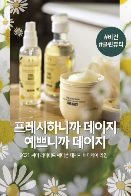 2021년 여름 시즌 한정판 에디션으로 데이지 추출물을 함유해 프레쉬한 플로럴 향이 따스한 여름날 데이지 정원으로 인도해 주는 듯한 느낌을 선사한다. 데이지 꽃의 풍성한 플로럴 향이 특징인 ‘쿨 데이지 샤워젤’, 가벼운 제형의 바디 모이스춰라이저인 ‘쿨 데이지 바디요거트’, 히알루론산을 함유해 여름철에도 끈적이지 않게 풍부한 수분감을 제공하는 ‘쿨 데이지 하이드레이팅 바디 미스트’ 등으로 구성했다.