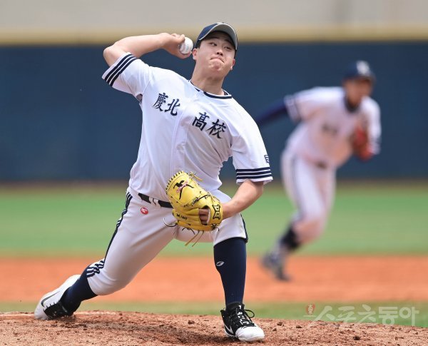 1일 서울 목동야구장에서 ‘제75회 황금사자기 전국고교야구대회 겸 주말리그 왕중왕전’ 부경고와 경북고의 경기가 열렸다. 7회초 경북고 진승현이 마운드에 올라 역투하고 있다.