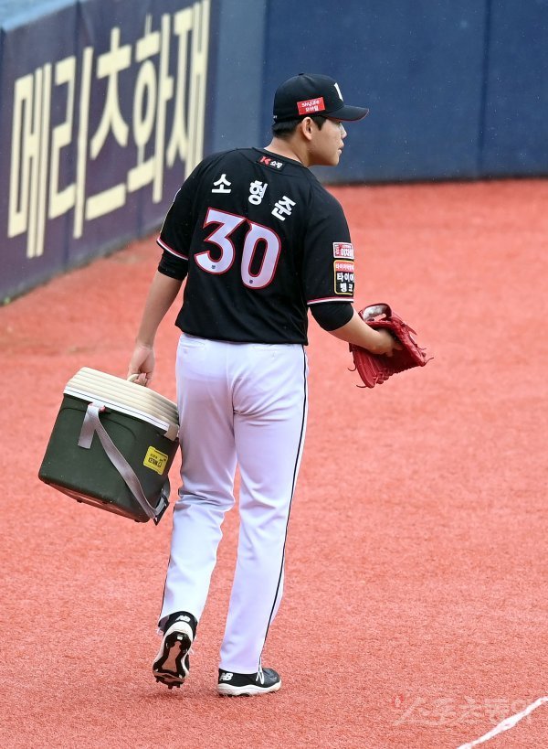1일 서울 잠실야구장에서 ‘2021 신한은행 SOL KBO리그’ KT 위즈와 LG 트윈스 경기가 열린다. KT 소형준이 훈련을 위해 외야로 나가고 있다.