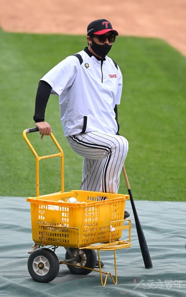 1일 서울 잠실야구장에서 ‘2021 신한은행 SOL KBO리그’ KT 위즈와 LG 트윈스 경기가 열린다. LG 이병규 코치가 선수들의 훈련 모습을 바라보고 있다.