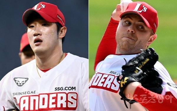 SSG 박종훈(왼쪽), 르위키. 스포츠동아DB