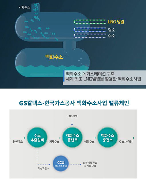 GS칼텍스와 한국가스공사가 구축하기로 한 액화수소 플랜트는 세계 최초로 LNG 인수기지의 기화 공정에서 발생되어 버려지던 LNG 냉열을 에너지로 사용하는 친환경 플랜트가 될 전망이다.