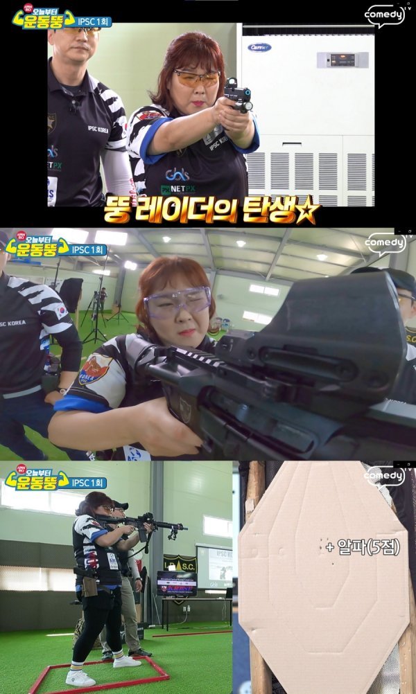 ‘운동뚱’에서 김민경이 실탄 사격에서 올 알파를 기록했다.