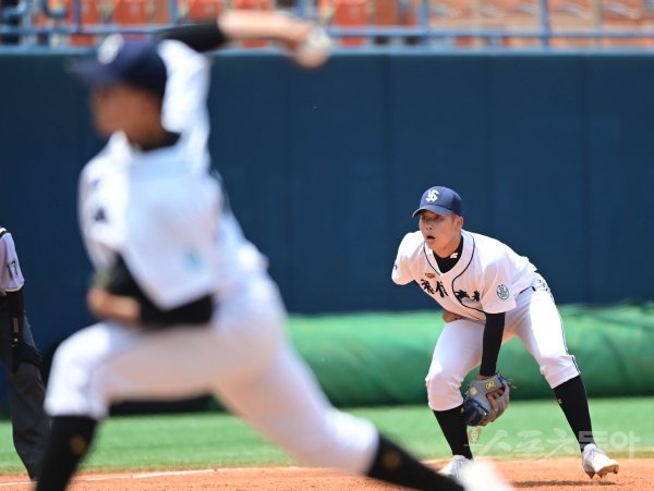 2일 서울 목동야구장에서 ‘제75회 황금사자기 전국고교야구대회 겸 주말리그 왕중왕전’ 유신고와 K-POP고의 경기가 열렸다. 3회초 유신고 박영현이 3루수로 선발 출장하고 있다.