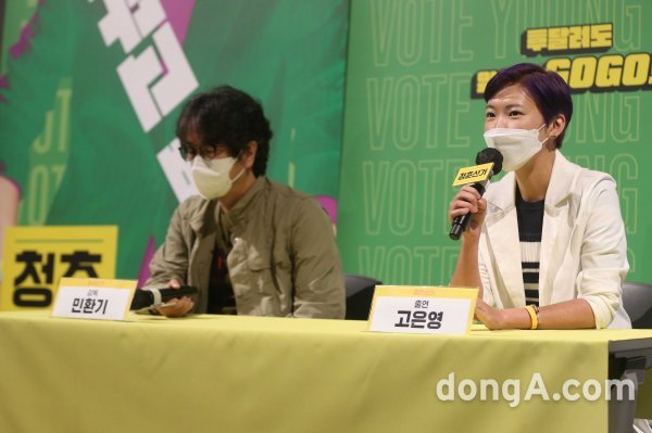배우 고은영이 2일 오후 서울 용산구 한 멀티플렉스관에서 진행된 다큐멘터리 영화 \'청춘선거\' 언론시사회에 참석해 인사말을 하고 있다. \'청춘선거\'는 청년 정치인 고은영의 정치성장기를 다룬 다큐멘터리물로 민환기 감독이 연출했다.