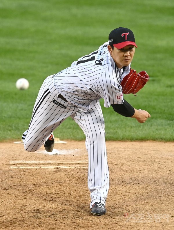 선발 투수로 등판한 LG 정찬헌이 역투하고 있다.