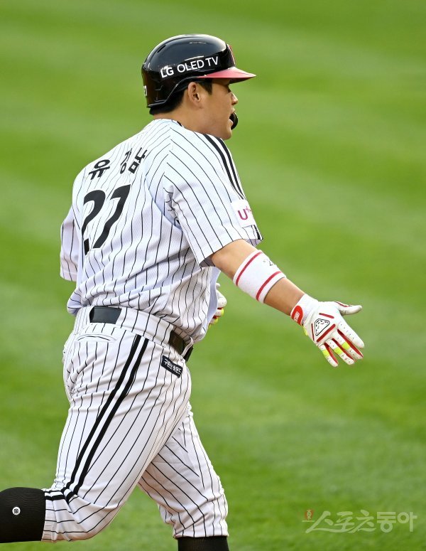2회말 2사 3루 LG 유강남이 좌중월 투런 홈런을 날린 후 그라운들 돌고 있다.